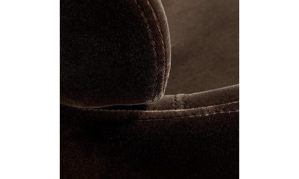 Designed by Caleb Zipperer and curved with two tiers of comfort. Soft grey mink stool invites guests to stay a while. Sits plush with bottom tier sized right for arm resting,