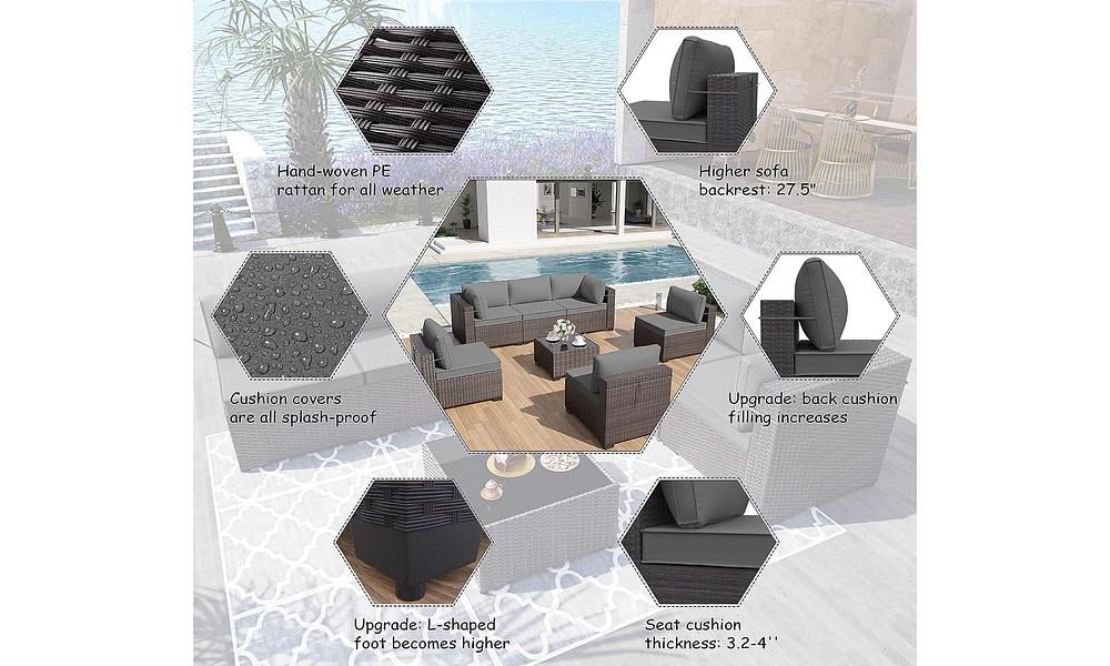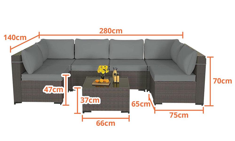 Sleek style and incredible value - the 7-piece Florence rattan-look modular set is the missing piece to your outdoor entertaining oasis. Seating six people, you can configure it as you like - an ultra-long couch, an intimate conversational grouping or even a 6-piece circle. Add the glass-topped coffee table and that's a lot of bang for your buck. Crafted with beautiful, hard-wearing PE rattan and featuring chic charcoal cushioning, this lounge set is more than just furniture—it's a ticket to becoming the envy of your neighbours!