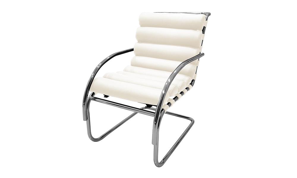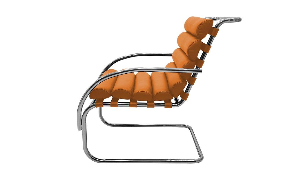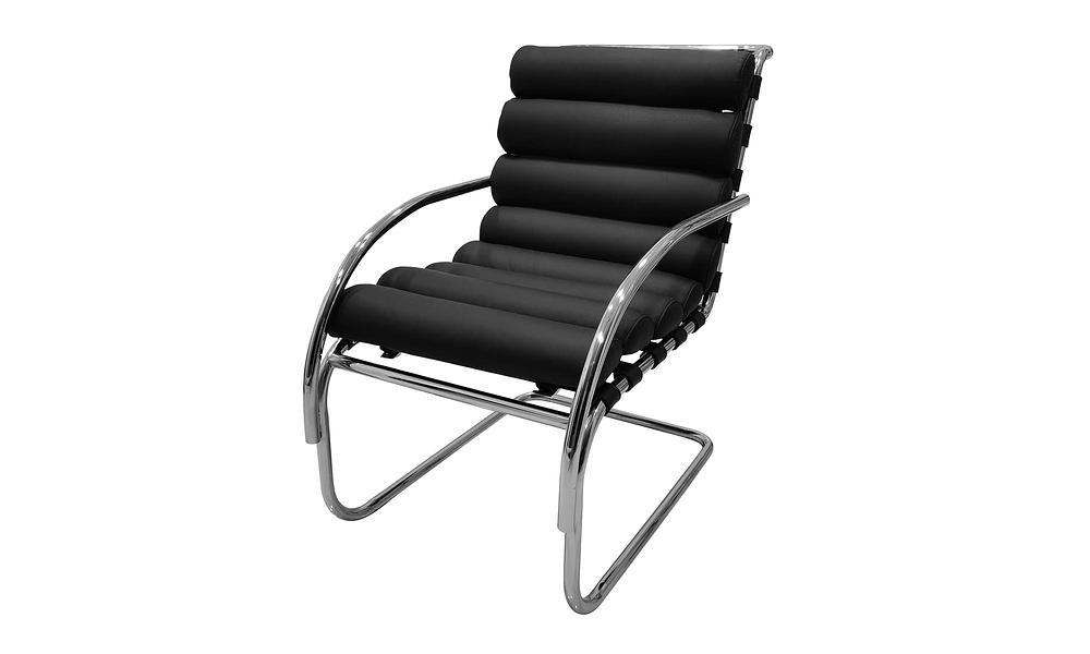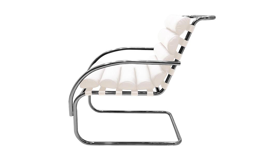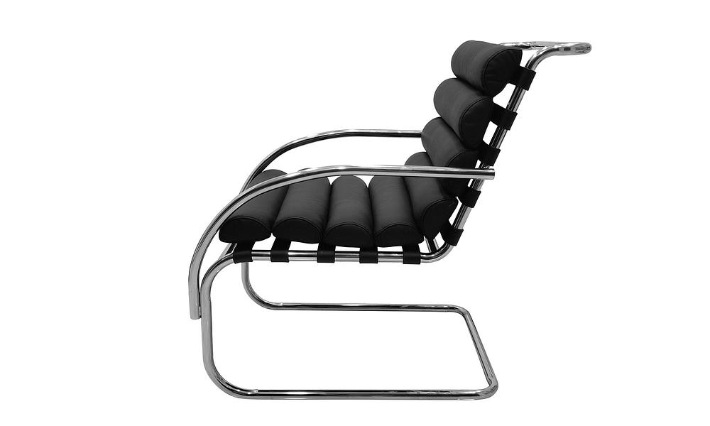 The MR range by Mies van der Rohe represents some of his earliest works; taking inspiration from 19th-century rocking chairs the chair's suspended design grants a comforting sense of movement. Designed specifically for relaxation the light tubular construction, thick leather straps, and sumptuously padded cushioning ensure these replica armchairs deliver, with timeless style, the objectives of their mindful and brilliant creator.