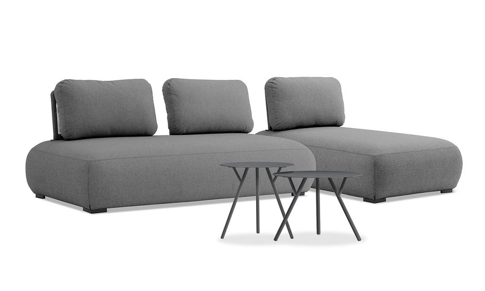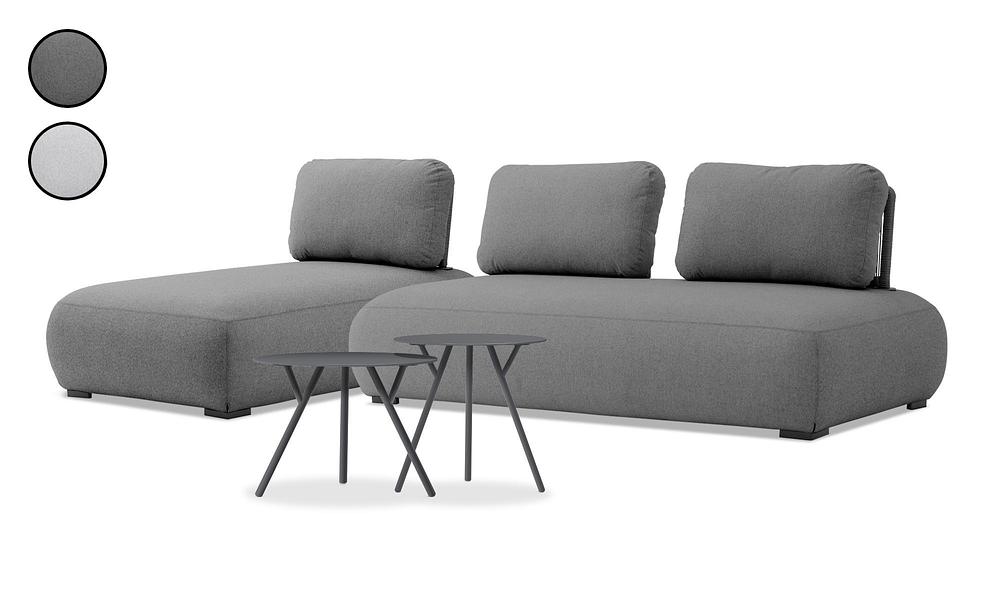 Introducing the Puff L-Shape Lounger Set, an outdoor sofa so stylish and comfortable, it might just make your indoor couch green with envy! This versatile set features a spacious sofa, a reversible lounger that can be arranged on either side, and two handy tables—a low one and a high one—perfect for drinks, snacks, or décor. It's the perfect blend of luxury and practicality, offering everything you need for a truly relaxing outdoor experience.