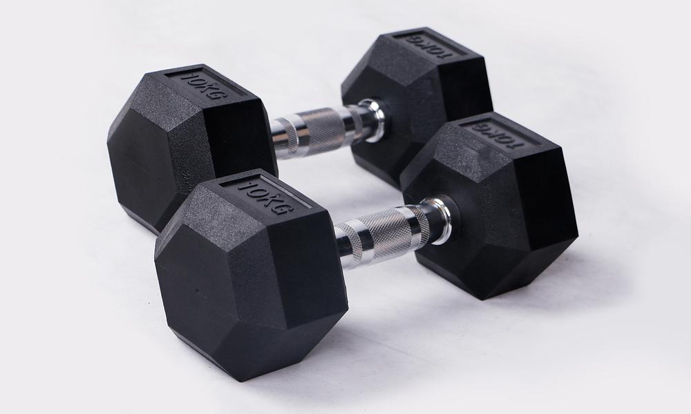 Don't wait for weights! Why queue up at the gym when these beauties are sitting at home eagerly awaiting your attention. Made with a steel chromed handle and iron heads coated in rubber to minimise noise and avoid floor damage the clever design of the unique hex-shaped weights ensures they won't roll away from you when you put them down. Pumping iron whenever the mood takes you....you may never leave the house again!
