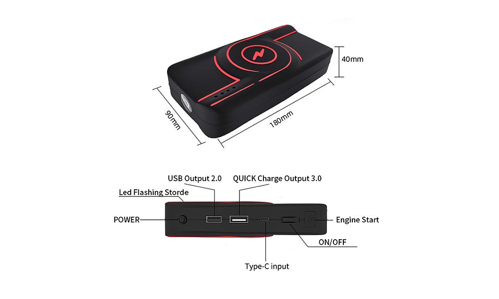 - Start 12V car gasoline car up to 5.0L and diesel car up to 3.0L