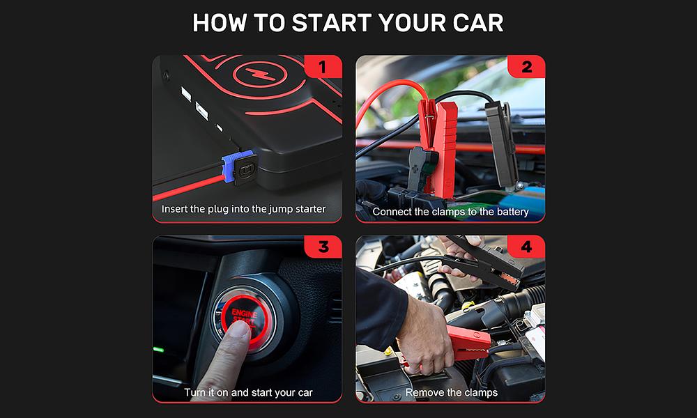- Smart jumper clamps protection for short circuit, overcharge, over-discharge, reverse polarity, reverse charge, over the current, reverse connection, and overheat