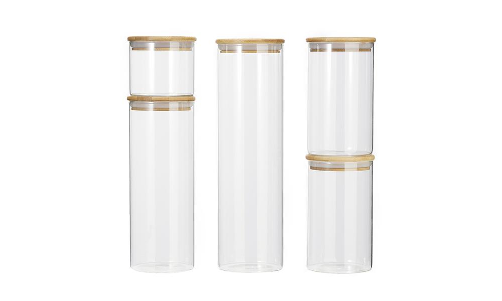 Perfect for storing all your loose and dry food supplies this 5 piece glass jar storage set is the sensible yet stylish way to tidily stash cookies, candy, flour, tea, rice, spice, spaghettis and so on. With silicone sealed airtight lids they'll keep the freshness in and any nasty creepy-crawlies out!