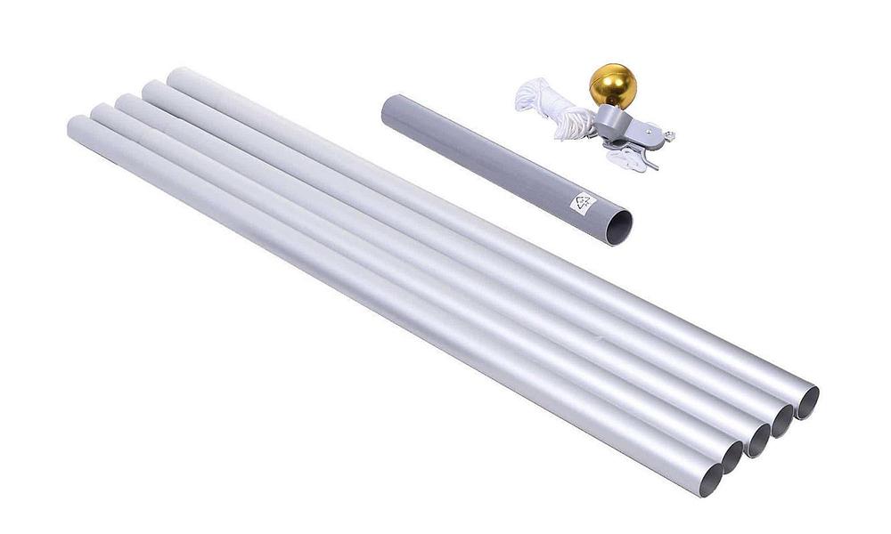 Patriots REJOICE! Wear your heart on your sleeve and fly your favourite flag for all to see! With a soaring height of 7.6m and a gold-coloured ball that sits adorn, this Adjustable Flagpole is sure to catch the eye of many passersby. Installation, raising and taking down of the Flagpole is made super easy thanks to the sectional aluminium construction, and the ground sleeve which allows you to remove the pole or leave it up permanently.