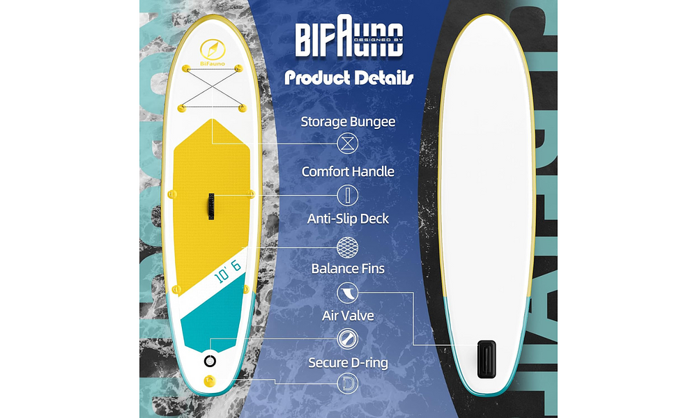 Ready to make waves this summer? The Aloha 10'6" Inflatable Stand-Up Paddle Boards are your perfect New Zealand summer accessory! Transport yourself to the tropical paradise of Hawaii as you glide across the water. Whether you're paddling along serene lakes or exploring coastal waves, this SUP promises endless summer fun — minus the hula lessons.