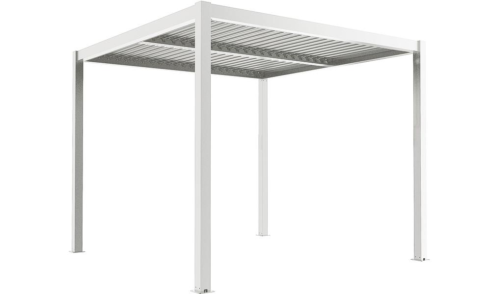 During rain showers, the Pergolas are waterproof. When the louvres are shut, rain water runs down the sides into internal gutters, then down through the legs rather than pouring out over the sides. However, please note that during heavy or torrential rain, water may drip through the louvred roof.