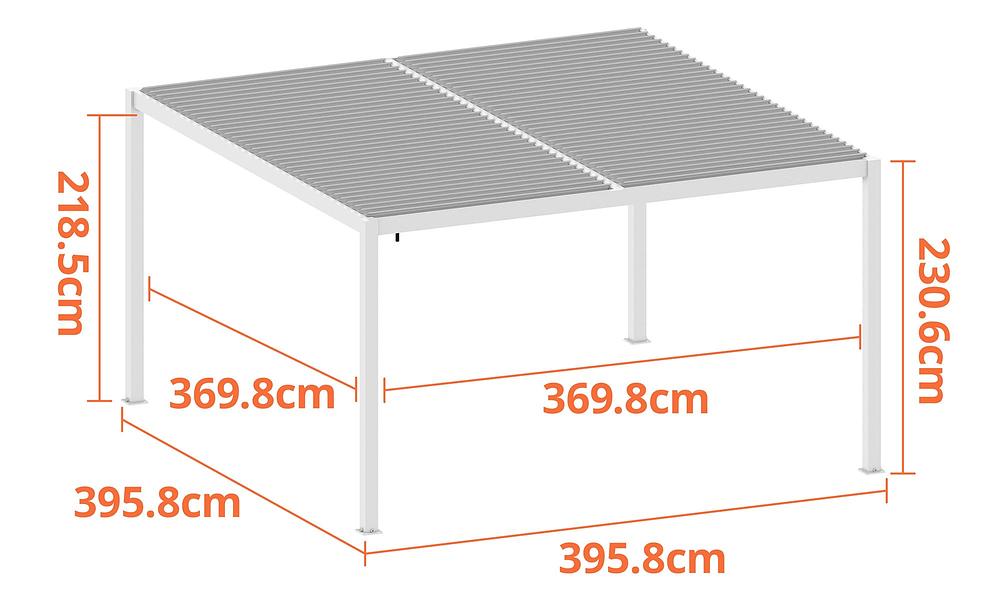 The louvres shut tightly when closed and are waterproof during showers - great for BBQs you're so fond of. Rain water runs down the sides into internal gutters, then down through the legs rather than pouring out over the sides. So you won't have to fear any unexpected deluges from on high, either!