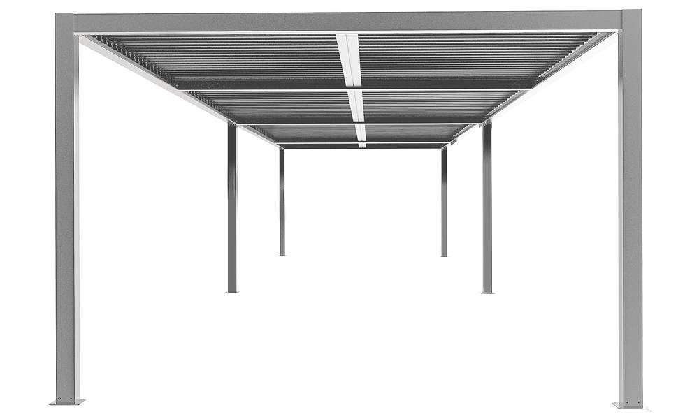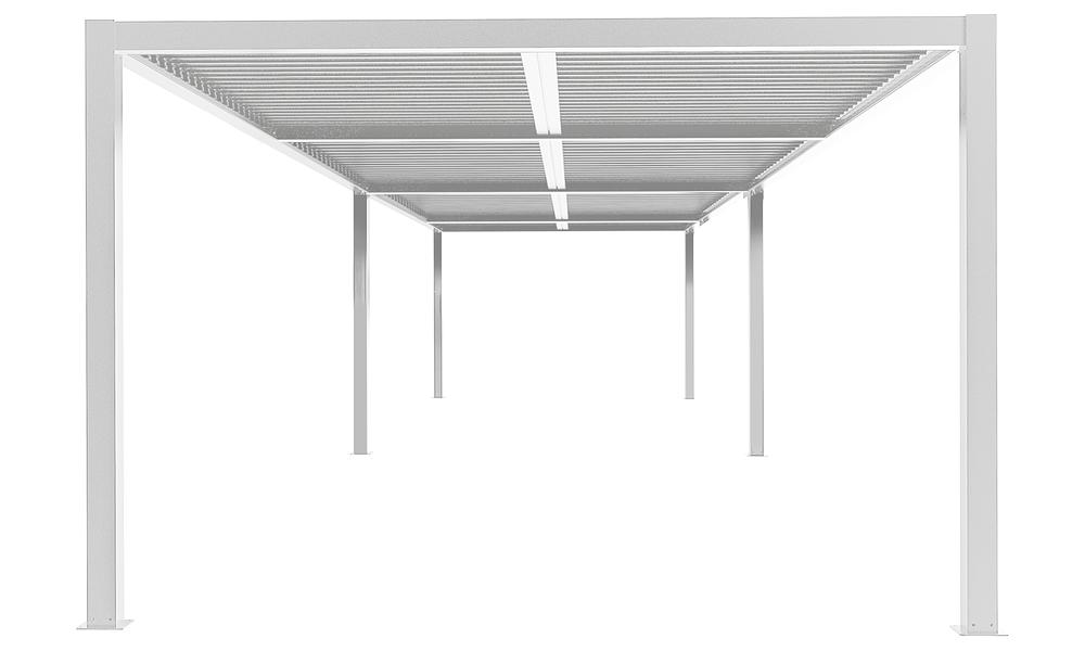 During rain showers, the Pergolas are waterproof. When the louvres are shut, rain water runs down the sides into internal gutters, then down through the legs rather than pouring out over the sides. However, please note that during heavy or torrential rain, water may drip through the louvred roof.