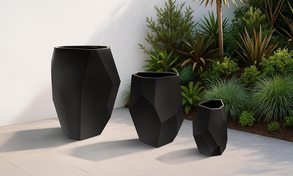 Where modern design meets natural patina, these planters are made to stand out. With bold, faceted shapes and clean, angular lines, each one is a geometric form that’s sculptural, striking, and guaranteed to make whatever you plant feel like a feature.