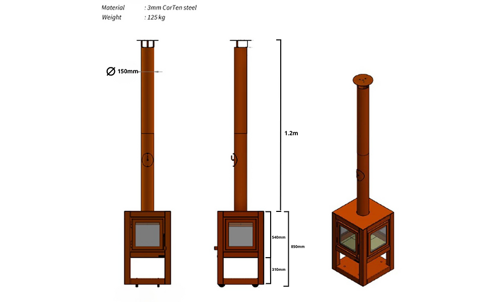 Material: 3mm thick corten steel, developing a natural rusted finish over time