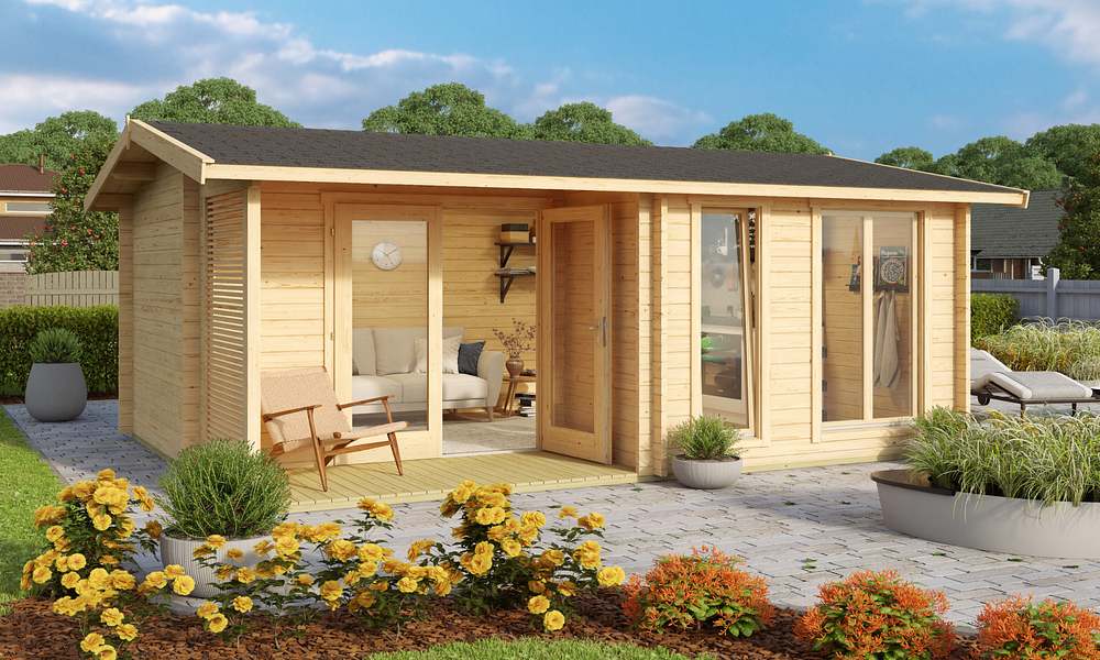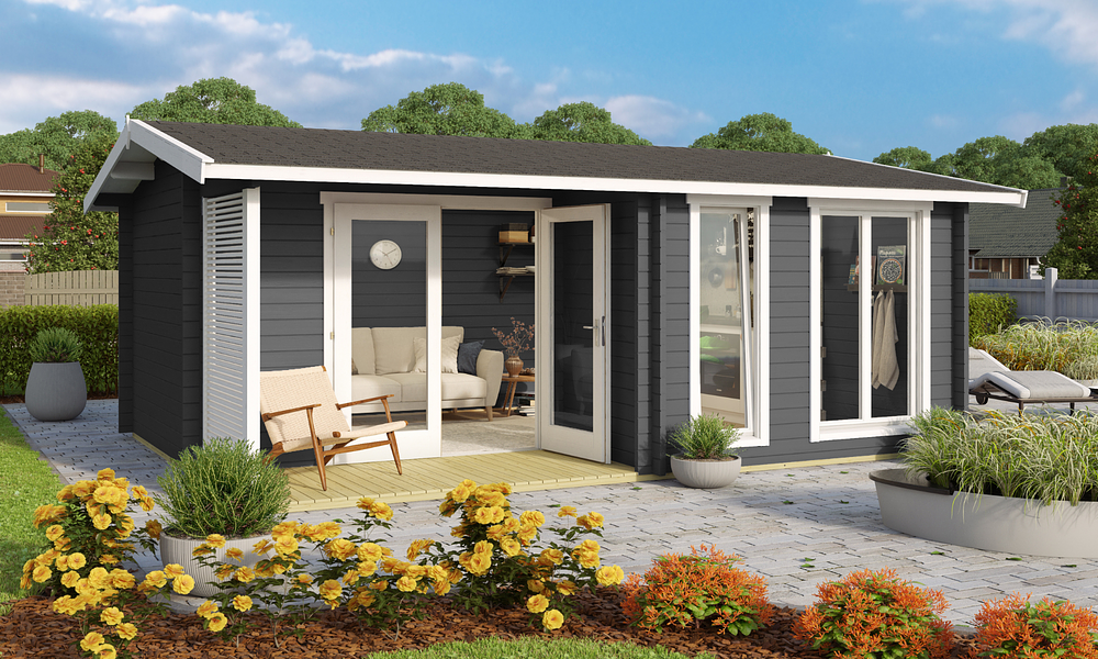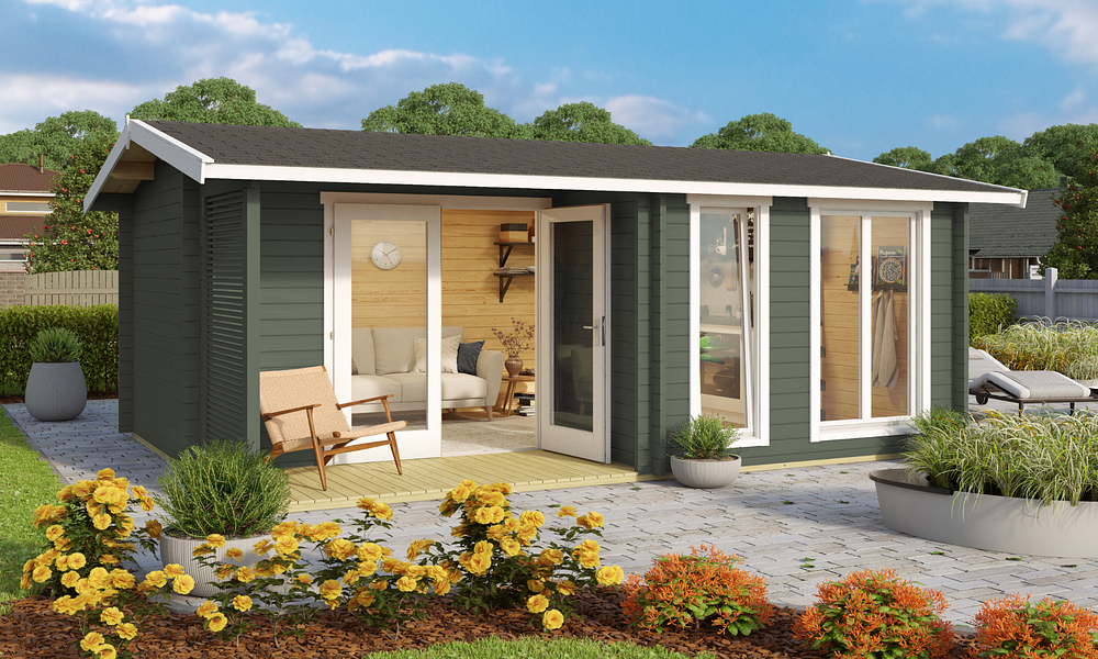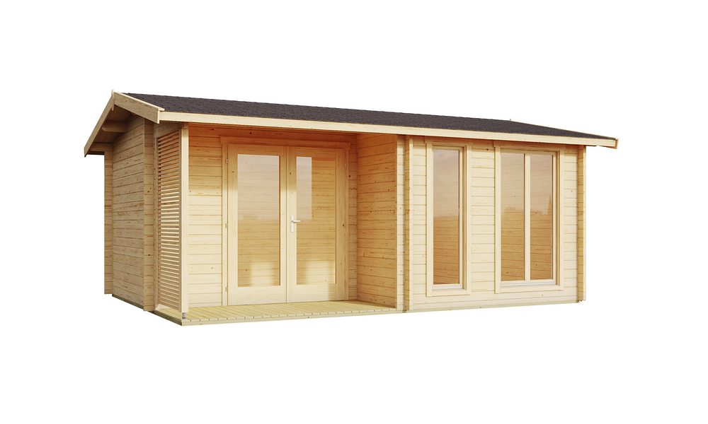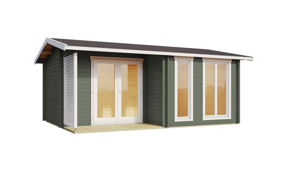The Beckett Cabin range is crafted from 44mm thick Nordic spruce, kiln-dried for superior durability and weather resistance. With a classic pitched roof, a double windowed door, a single front window, and a larger double window, it offers a warm, home-like feel. Perfect for studios, home offices, or guest spaces, the Beckett Cabin combines charm with practicality. With lockable doors, flooring, and a weatherproof Onduline, felt, and shingles roof, it’s built for year-round comfort.