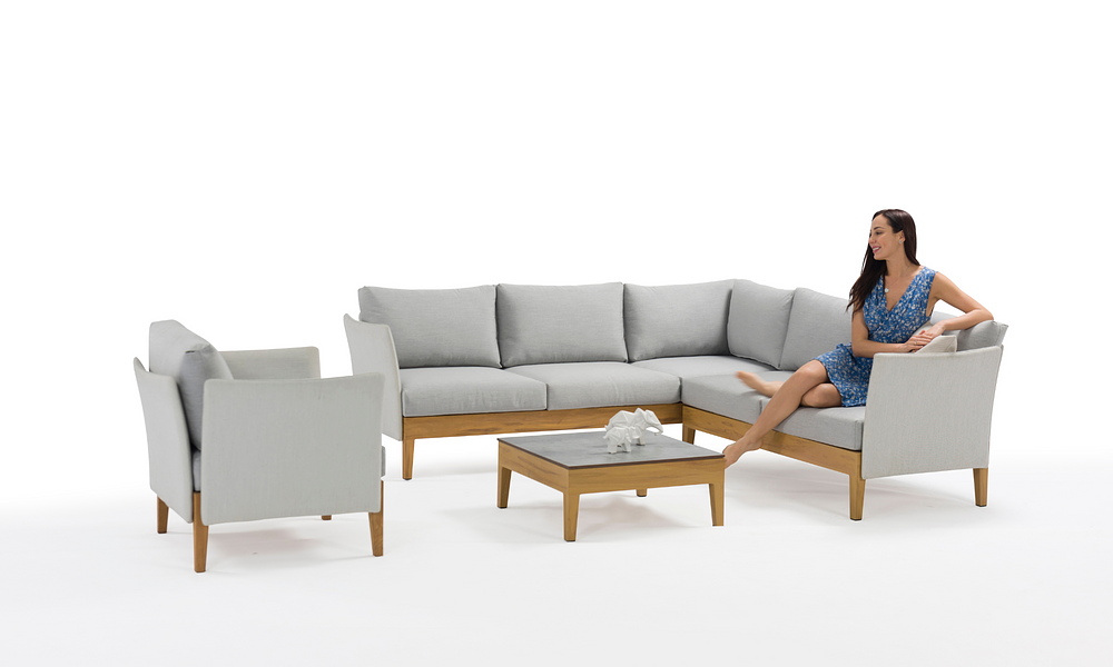 "Dessi Corner Sofa Set" redefines your outdoor living space with its versatile design and quality craftsmanship. This set combines a luxurious 3-seater sofa, a cozy 2-seater sofa, an additional cushion for easy corner transformation, and a stunning coffee table to create a harmonious ensemble that caters to your every need.