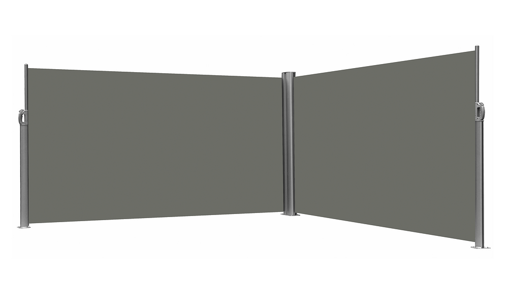 - Includes 1 x dual side screen central 'cassette' housing unit, 2 x free-standing poles
