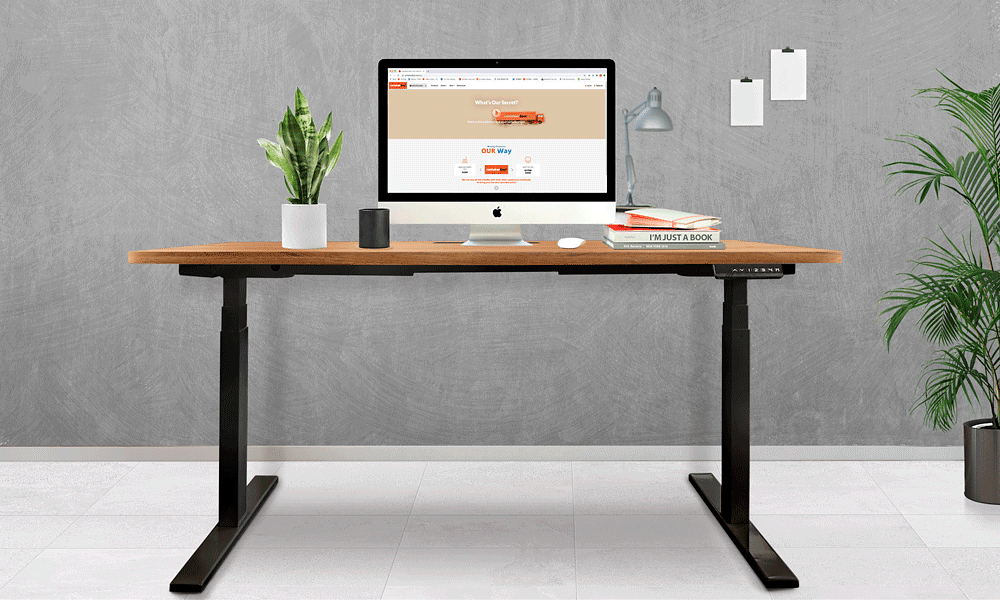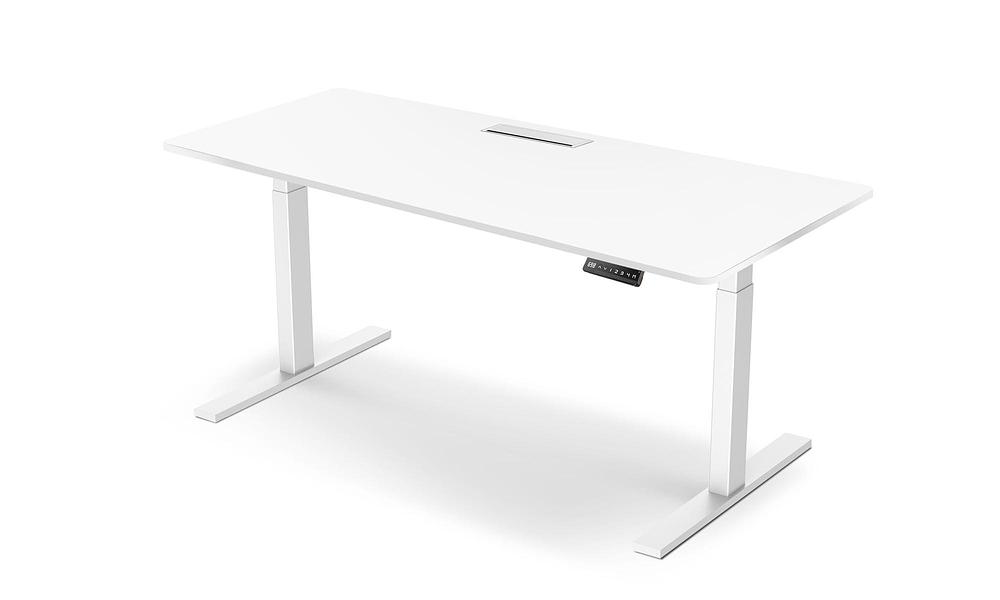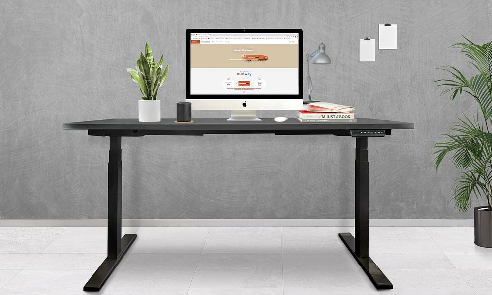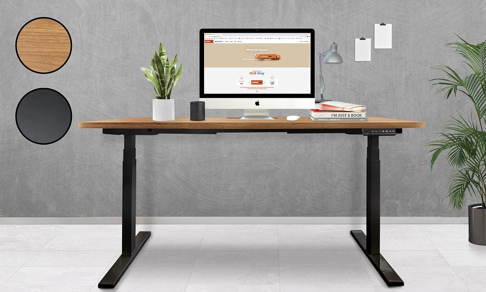- Sturdy electronic desk base that automatically lifts and descends at the touch of a button