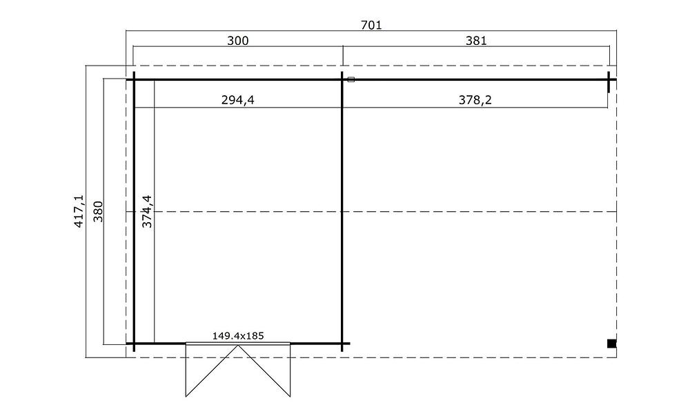 - Base Dimensions (WxD): 680 + 294 x 380cm