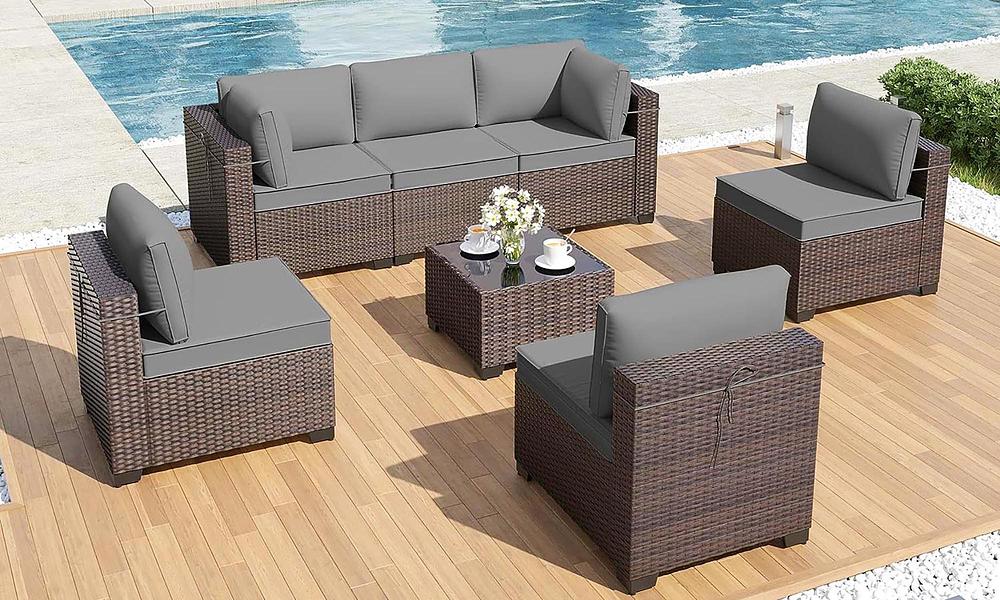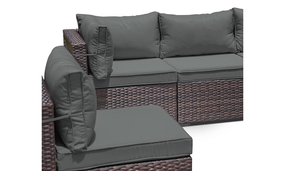 Sleek style and incredible value - the 7-piece Florence rattan-look modular set is the missing piece to your outdoor entertaining oasis. Seating six people, you can configure it as you like - an ultra-long couch, an intimate conversational grouping or even a 6-piece circle. Add the glass-topped coffee table and that's a lot of bang for your buck. Crafted with beautiful, hard-wearing PE rattan and featuring chic charcoal cushioning, this lounge set is more than just furniture—it's a ticket to becoming the envy of your neighbours!