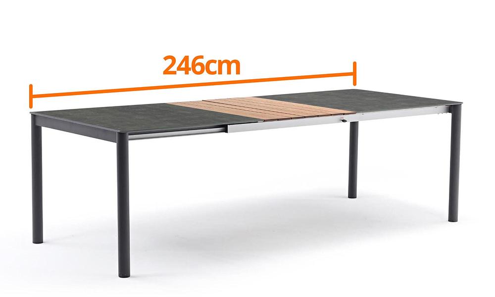 More guests coming around than you thought? Not to worry, this stunning Fresco Table can extend up to 2.4m in length to accommodate gatherings of various sizes, making it a true example of practicality and style. Your guests will be impressed, you'll be impressed (with yourself), and no one will have to bump elbows, setting your day/night on the right track and proving that you really are the host with the most!