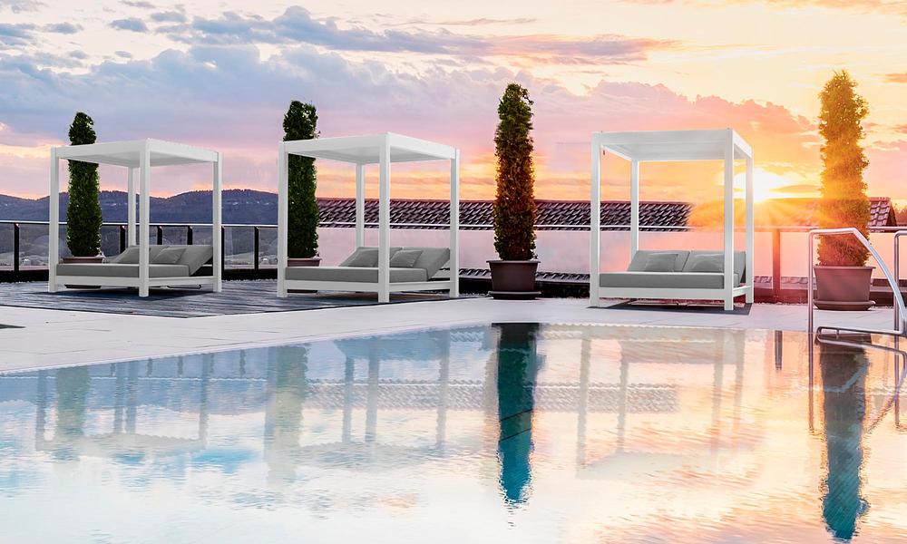 The Gio Luxury Cabana is your one-way ticket to an instant vacation without leaving you looking like a lobster! Imagine a day bed that's not just a piece of furniture, but a portal to a beach club paradise. We're talking about a level of relaxation so extreme that you'll forget what country you're in! This luxury cabana has louvres that elegantly adjust at your discretion, allowing you to bask in the sunlight like the sun-soaked superstar you are or create enough shade to keep you cool while you perfect your sunglasses game! Gone are the days of squinting at your phone screen, now you can tan and look into the distance and pretend your Jennifer Lopez!