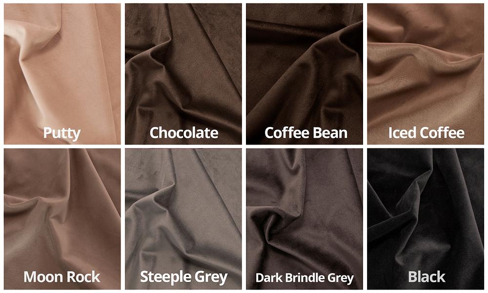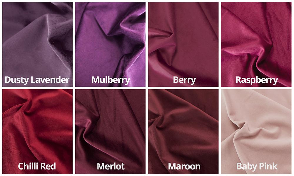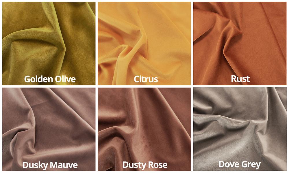 *NB we have done our best to make the colour swatch photos as accurate and true to life as possible. However, velvet can be difficult to photograph so, come and see the samples and swatch cards in our showroom. We’re happy to give you a colour swatch to take home - or we can post one out to you if you email us.