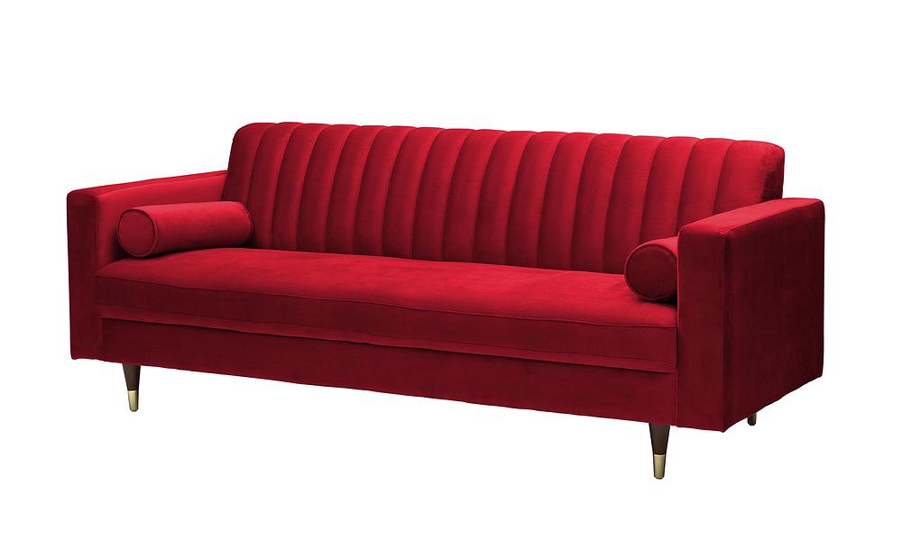 Serving structured style and sass the Hayward 3 seater sofa delivers modern appeal while simultaneously drawing inspiration from the architectural forms and silhouettes of the iconic mid-century movement. With chic vertical tufting, squared-off arms, cylindrical bolster cushions and a delicate pointed leg the rigid form of the sofa is tastefully softened by the plush velvet upholstery within which it finds itself enveloped. Proving that elegance can be comfortable the Hayward is a dazzling showstopper with timeless appeal.