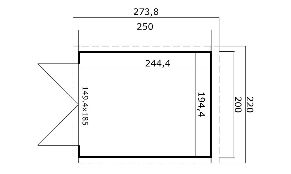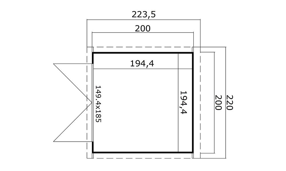 - Glazed Door: WxH 149 x 185cm
