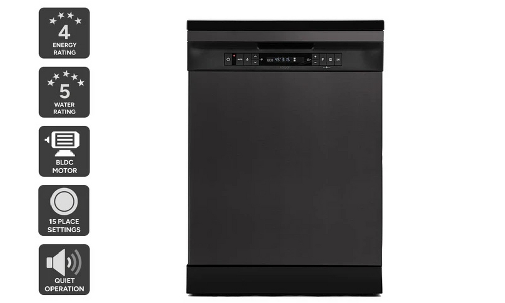 - Water Rating: 5 Star, 11.8 Litres per wash (ECO Program), WELS Registered (Model: Kogan, KAM15PDWFSB, Registration: D02867)