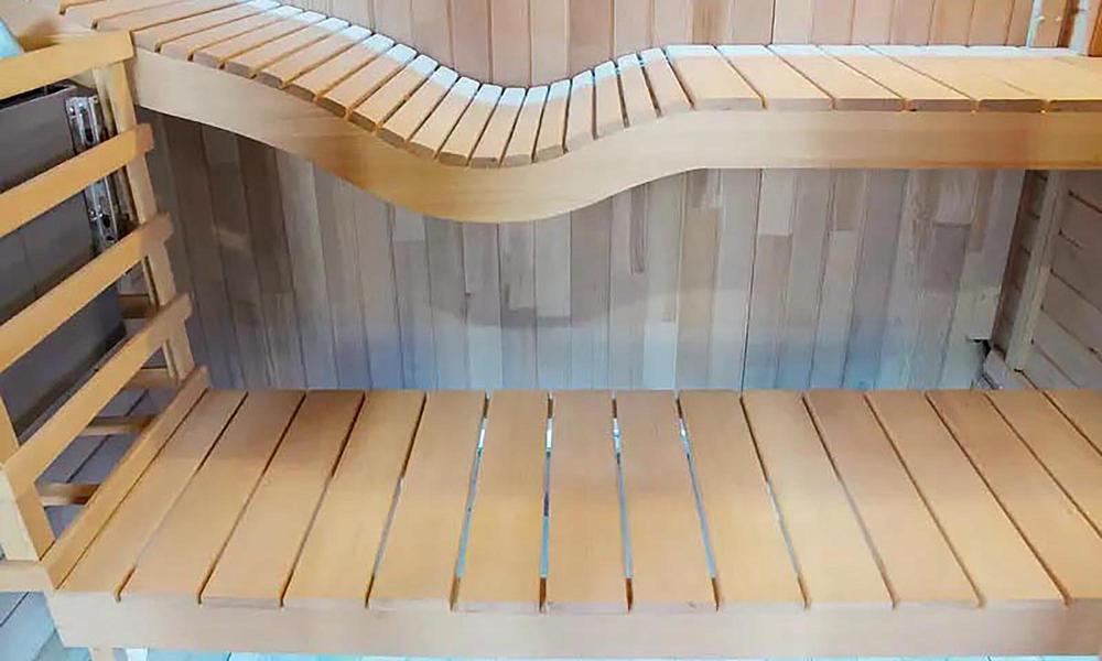 Hemlock wood is an ideal choice for saunas due to its exceptional durability, moisture resistance, and low-maintenance qualities. Its light hue and fine grain enhance the sauna's calming atmosphere, while its low resin content ensures even heat distribution and a comfortable, long-lasting performance.