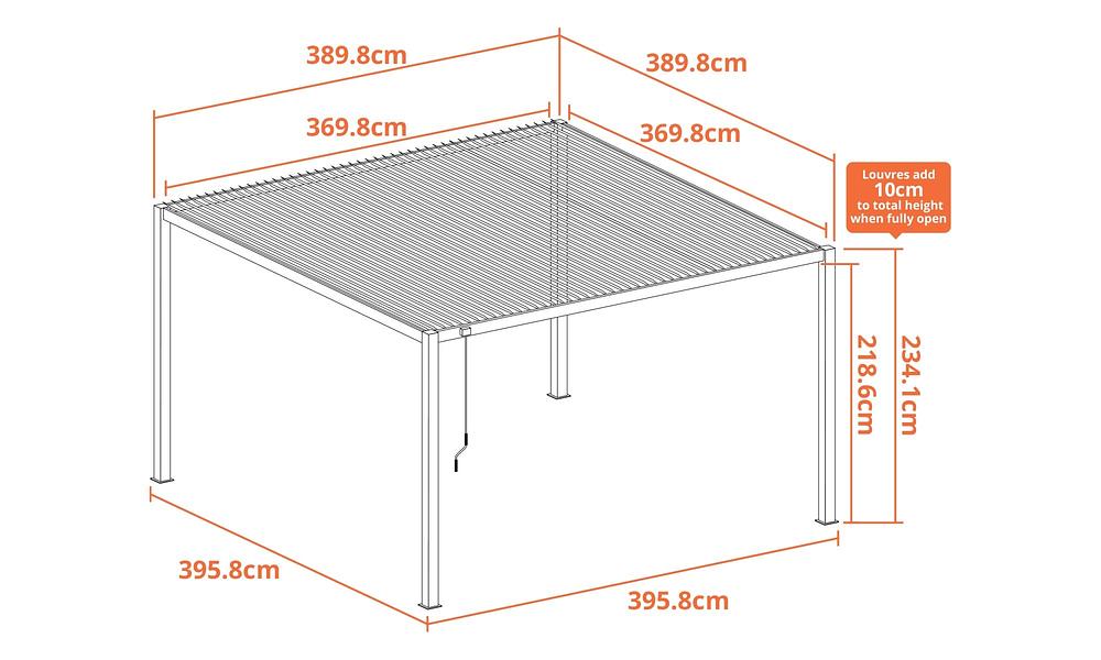 Internal width post to post: 3698 x 3698mm (369.8cm x 369.8cm)
