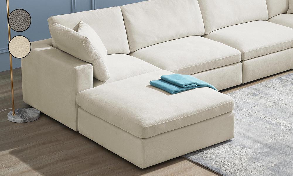 A gorgeous accompaniment to the Newport 3 & 4-Seater luxury sofas, this deeply inviting ottoman serves up a whole lot of stylish practicality that works just as well alone as it does with the rest of the collection. Available in two delightfully restful neutral tones of Modern White and Modern Grey the plump feather cushioned sectional can be moved around at will and used as a leg rest extension to the couch, a stand-alone recliner or a soft-topped coffee table. So much versatility in something so stylish!