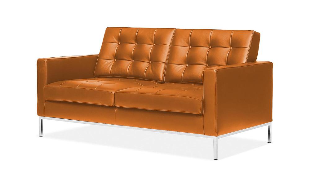 First conceived in 1954 the Florence Knoll sofa and armchair collection is without question an icon of modern design that embodied not only the aesthetic ethos of the time but the optimism of a post WW2 world too. Rationally proportioned with a geometric profile the handsome architectural cubist lines of the design are softened by tufted button detailing, genuine leather and a gently relining back rest. The 2 seater sofa is the grown up solution for homes that are small on space but big on taste!