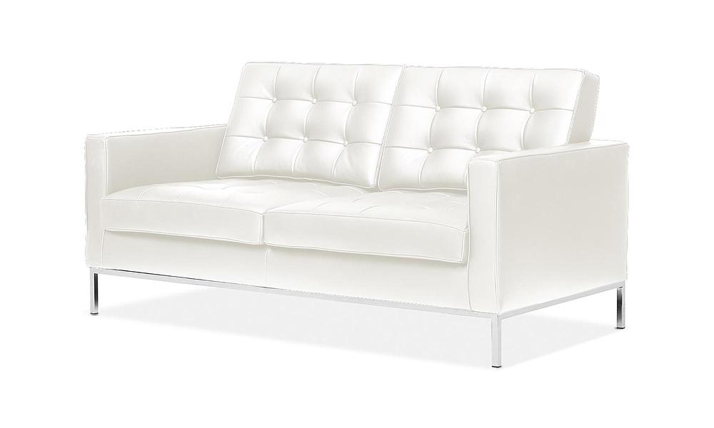 First conceived in 1954 the Florence Knoll sofa and armchair collection is without question an icon of modern design that embodied not only the aesthetic ethos of the time but the optimism of a post WW2 world too. Rationally proportioned with a geometric profile the handsome architectural cubist lines of the design are softened by tufted button detailing, genuine leather and a gently relining back rest. The 2 seater sofa is the grown up solution for homes that are small on space but big on taste!