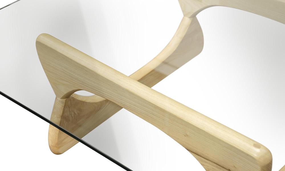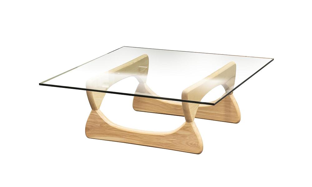 A contemporary take on an iconic coffee table by renowned Japanese poet and sculptor Isamu Noguchi that represented a departure from the straight lines of design to a new ethos that extolled the virtues of curves and balance. This gorgeous table marries the transparent qualities of glass with the solid properties of timber for a perfectly poised show-piece set to take centre stage in your living room or office.