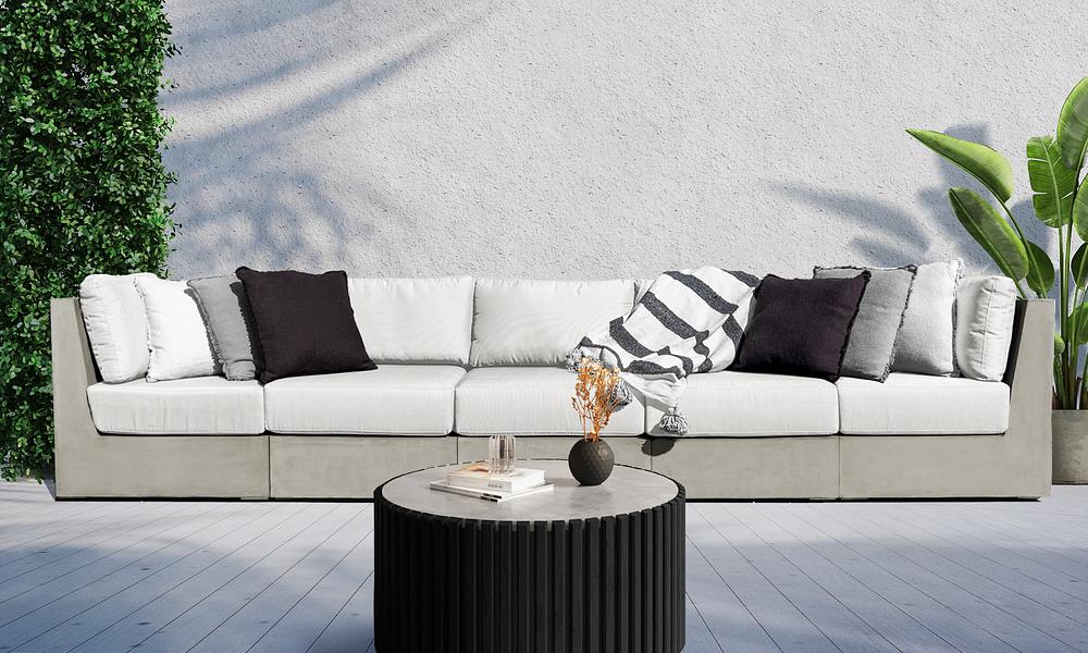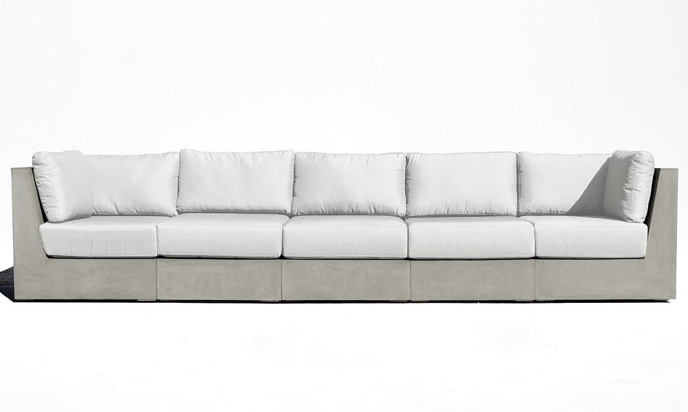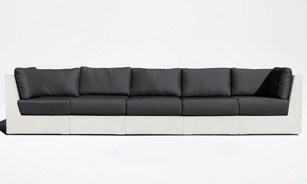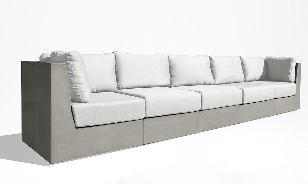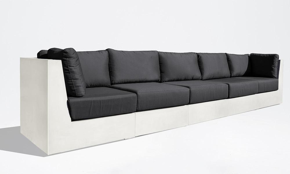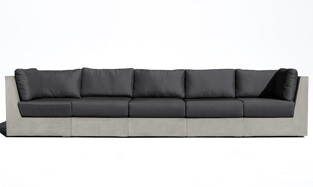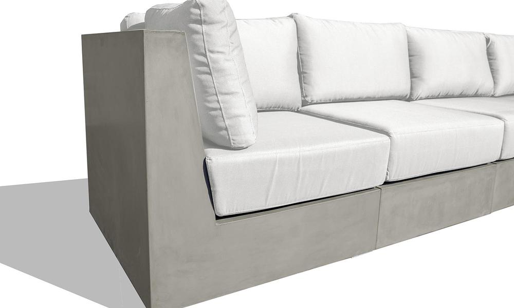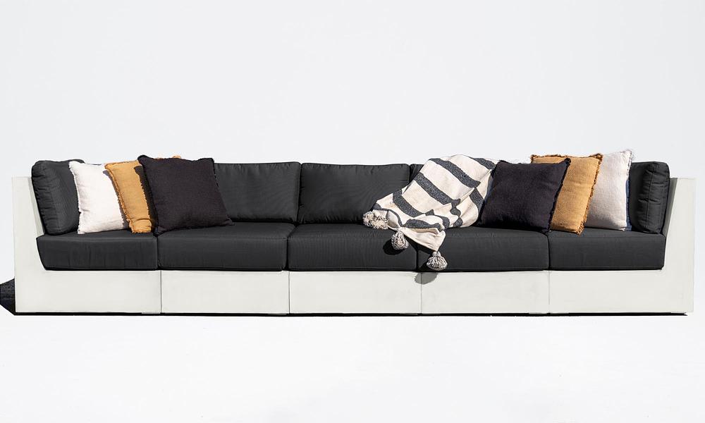 With stylish good looks this could be straight from a chic international resort. The concrete sofa as a design chameleon suiting any situation from jungle surrounds to an urban patio to a sunny pool-side location. A dramatic indoor piece too, it's made up of 2 corner (end) seats, and 3 middle seats, and the cushions are included.