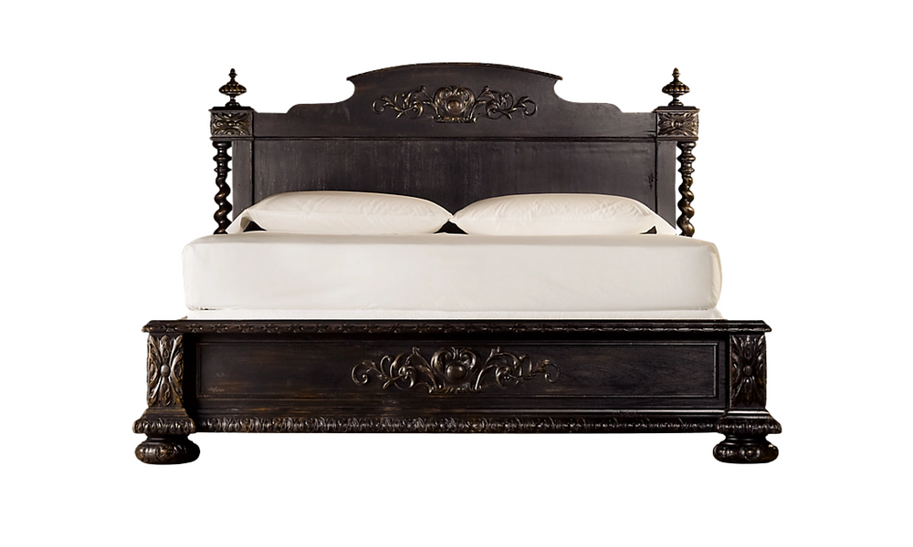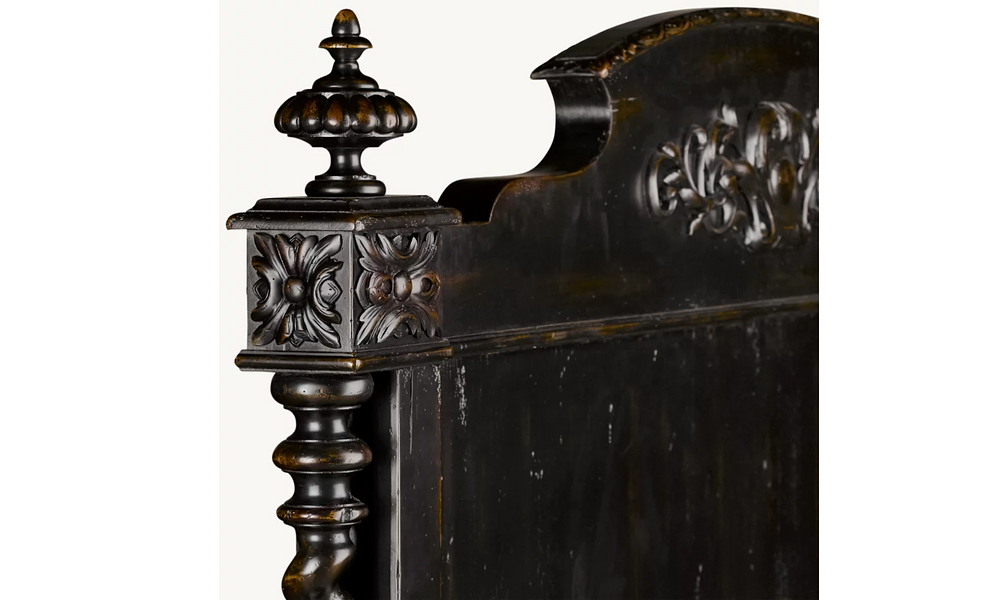 Step into pure luxury with this Restoration Hardware French Empire Panel Bed, now available in our showroom, but only for one lucky buyer. This masterpiece draws from the grandeur of the mid-19th century Second Empire style, where bold design met lavish detail. Hand-carved flourishes, rich wood, and an 11-step artisanal finish make it a true statement of timeless elegance.