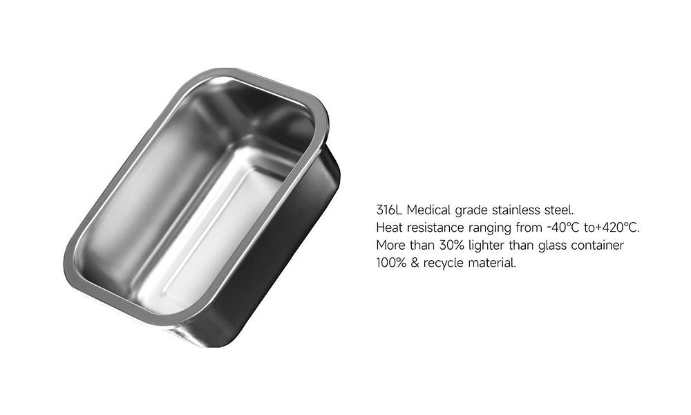 These all purpose food containers are top quality stuff, made from 316 medical grade stainless steel they're BPA Free, non-toxic ,100% recyclable and have a heat resistance from -40C to +420C. 30% lighter than a glass container they're oven, dishwasher and freezer safe too. With leak-proof, snap-on lids that preserve food they're ideal for lunches, picnics, food prep and food storage. Once you're done they're designed to stack (minus the lid) so they're a great space-saver in the kitchen too!