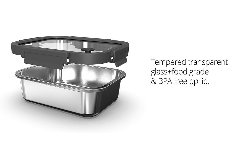 - Lid: Tempered transparent glass top lid with food grade PP frame and silicone ring, one air vent on the lid