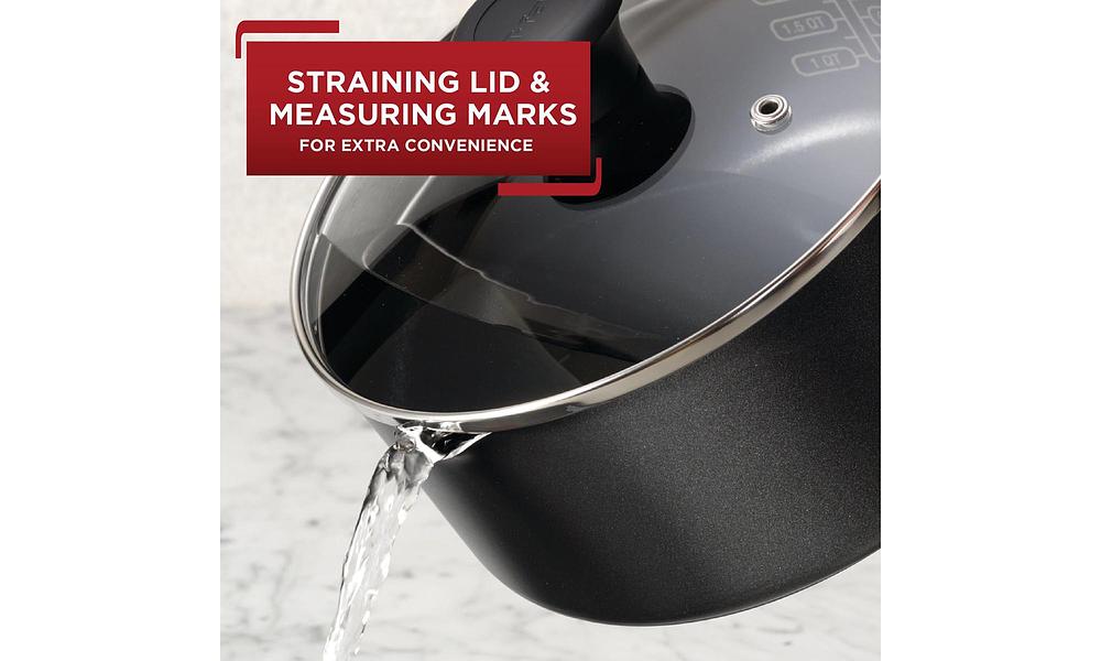 - Straining Lids: For convenient, mess-free and fast draining saucepans