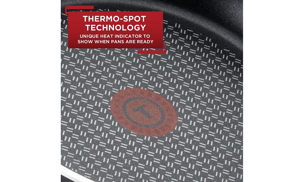 - Thermo-Spot Technology: Unique heat indicator that turns solid red to show when pans are properly preheated to start cooking