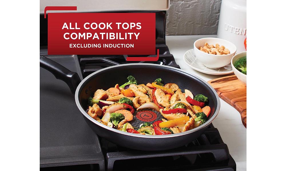 Maximise convenience for everyday cooking with this sparkly 14-piece non-stick cookware set from T-Fal. With a host of features that include soft-grip handles, straining-lids, vented tempered-glass lids, titanium nonstick interiors and a thermo-spot indicator this high-tech cook kit will even let you know when its reached optimum cooking temp. Excluding induction the cookware is compatible with any stove-top and being both dishwasher and oven friendly (175° celsius) there aren't many places that these guys can't go!