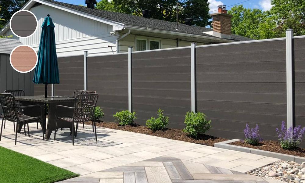 Choose your composite wood panel colour (Dark Grey or Coffee), then choose your Aluminium railing colour (Light Aluminium or Black).
