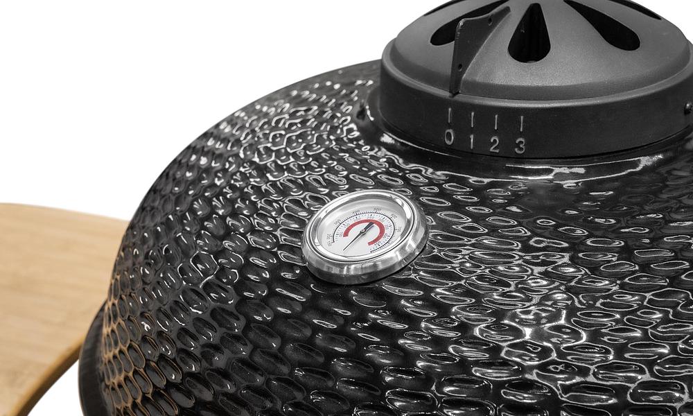 4 cooking modes allow you to sear, grill and smoke (even bake!) And you can use it as a pizza oven to get those truly mouth-watering wood-fired flavours. The aluminium alloy top vent gives total control over air flow allowing you to control and set the ideal cooking temperature which you can monitor with the built in thermometer.