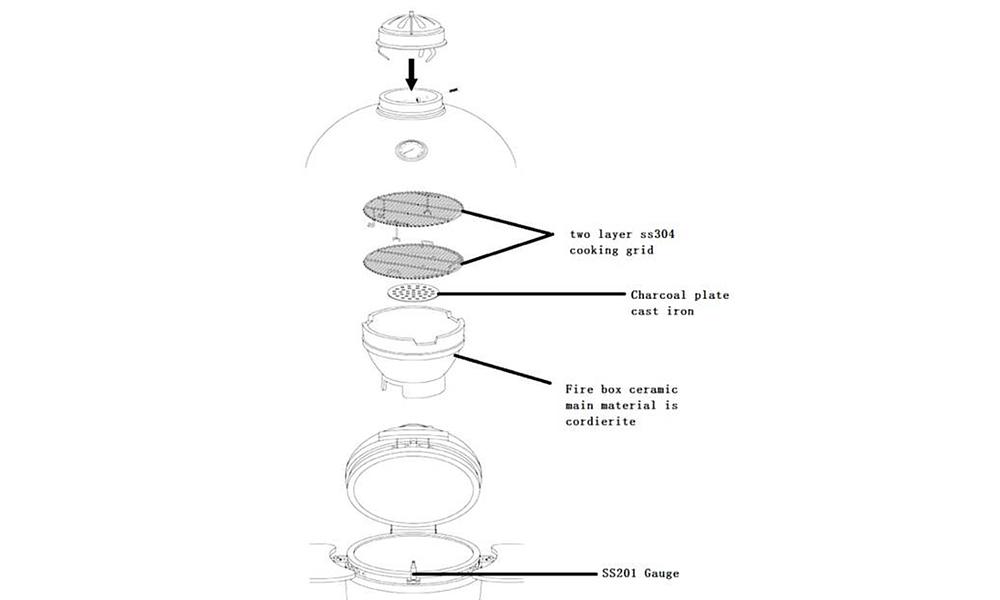 3) The ceramic body is covered by an extended 6 year warranty but normal wear and tear, cosmetic scratches, chips, and dings are excluded. However, remember that we will always try to help you out if you have a problem. But if you run out of meat or brewskis thanks to the well-known "Kamado Popularity Effect", you will be on your own.