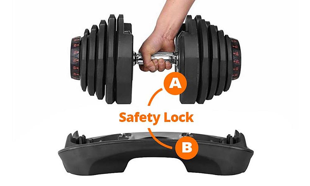 The weight selector technology allows you to change the load with just one hand, simply place the singular dumbbell in the cradle and twist the grip to add or reduce weight with ease, speed and safety.