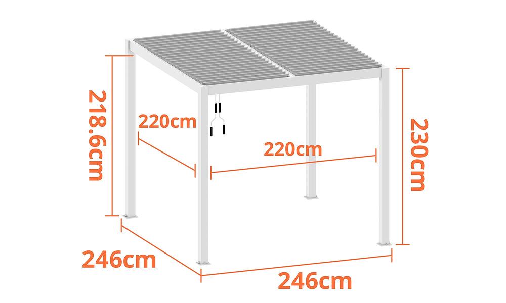 - Total Height of Pergola including open louvres 238cm