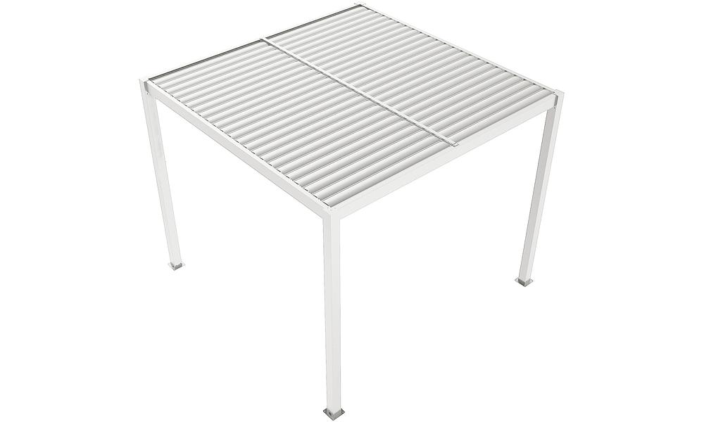 During rain showers, the Pergolas are waterproof. When the louvres are shut, rain water runs down the sides into internal gutters, then down through the legs rather than pouring out over the sides. However, please note that during heavy or torrential rain, water may drip through the louvred roof.