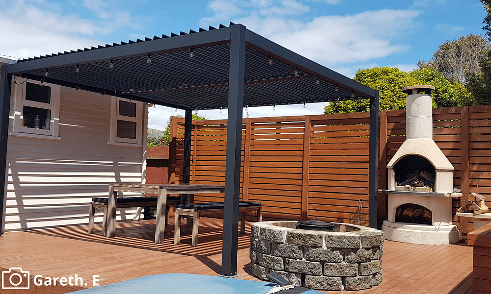 - "Love my pergola! Only challenge was fixing it to paving...would have shattered the pavers on the corners so my wonderful paving people (who also put up the louvres) created some brackets to attach to the fence and used only one screw into paver and concrete for each leg of the pergola. But looks great!!!!" - Edwina