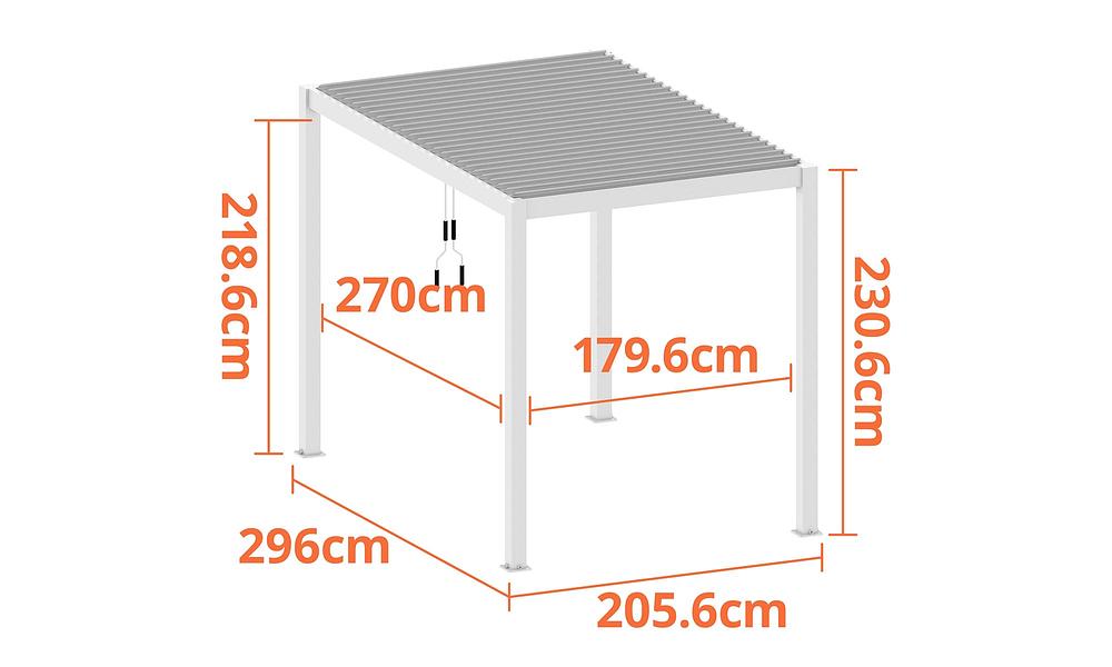 - Total Height of Pergola including open louvres 238cm
