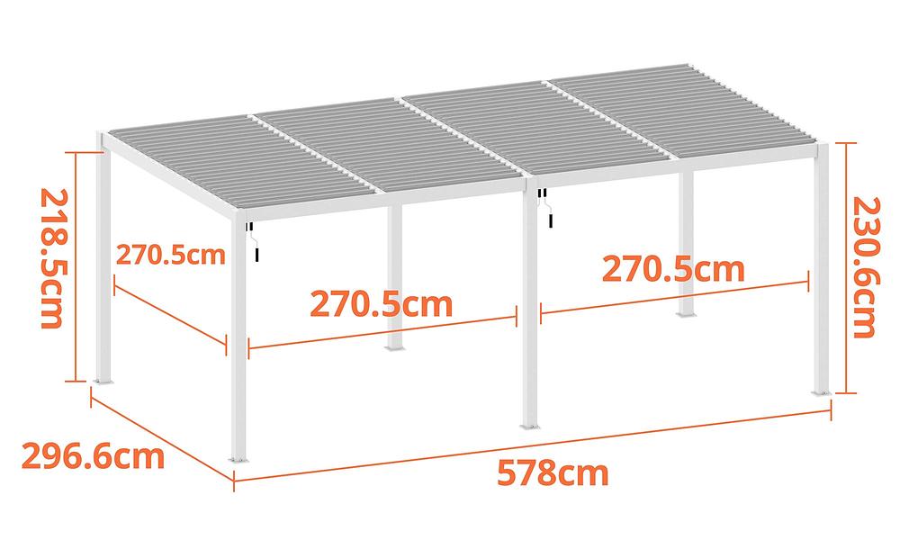 - Total Height of Pergola including open louvres 238cm