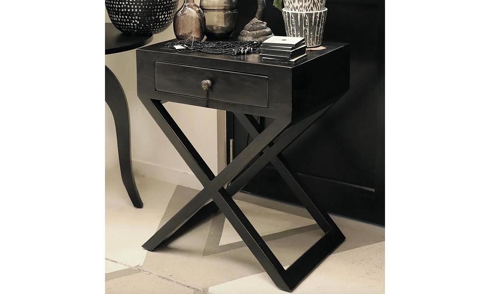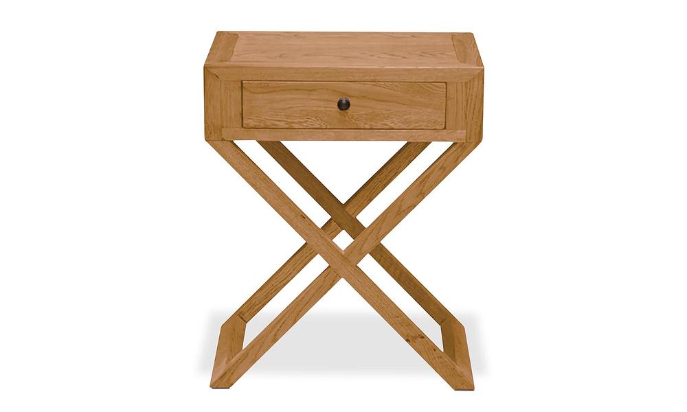 The clean lines and single drawer design offer just the right balance of form and function, while the distinctive crossed legs add architectural interest that elevates it beyond your average bedside table. Perfect for creating that serene beach house vibe, even if the nearest beach is just your shower!
